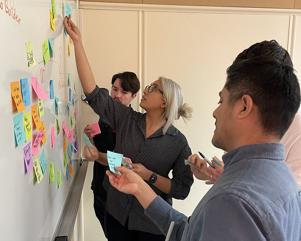 “We are applying a hybrid approach (In-person/Zoom) using real sticky notes as well as MURAL so that students can learn the pros and cons of both approaches.”