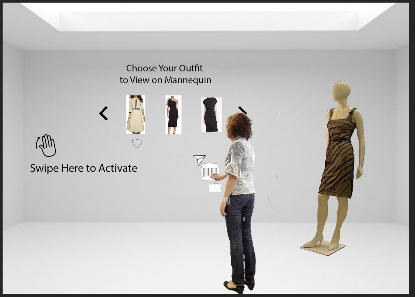 Team 1 wanted to elevate the user experience to build a more informative and personal experience when shopping for professional clothing. Attendees interact with the swatch of fabrics displayed on the wall to change the user’s garment style on the reflective kiosk. No need for changing rooms, on-hand product variants, or the stress of finding the right suite. Magic mirror, on the wall - who is the stylist of them all?
