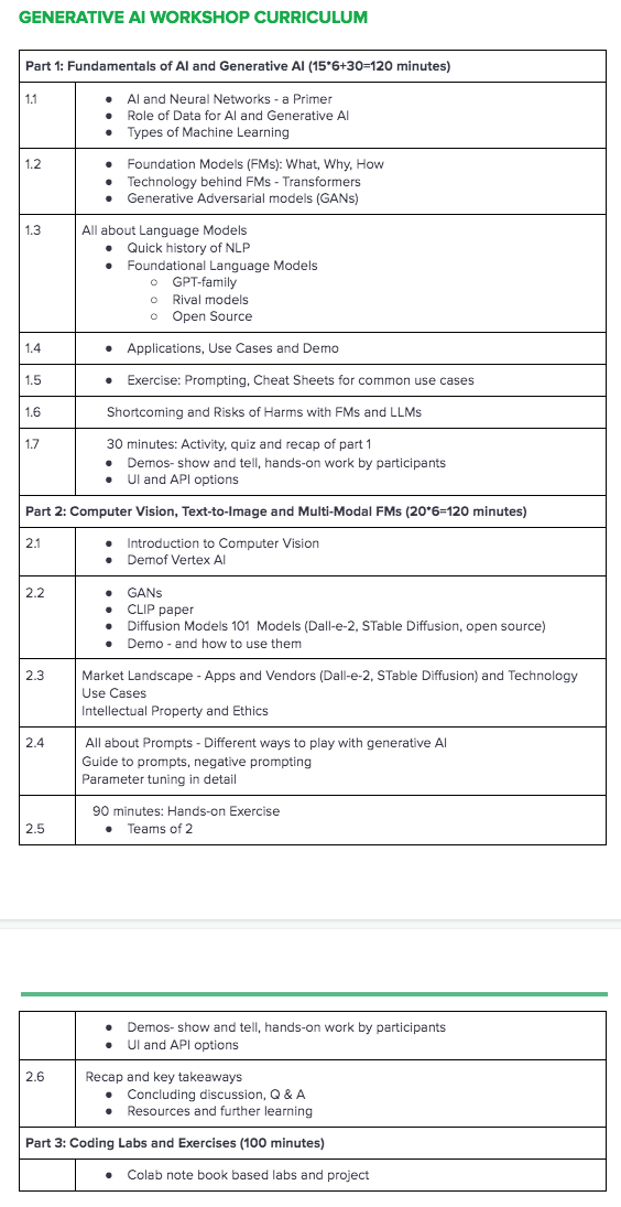 The workshop provides an in-depth knowledge and business applications of language models such as ChatGPT and Image generation models such as Dall-E-2 and Stable Diffusion. The workshop includes: